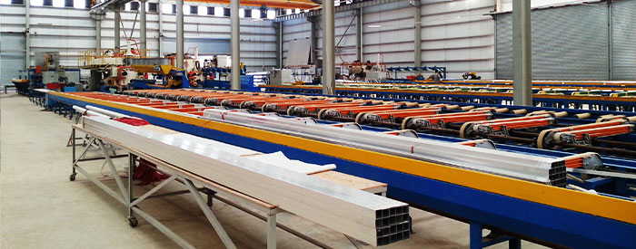 云浮生產(chǎn)基地一期建設(shè)落成,生產(chǎn)工序由模具、擠壓、氧化、電泳、噴砂、精鋸、物流等一條龍服務(wù)。